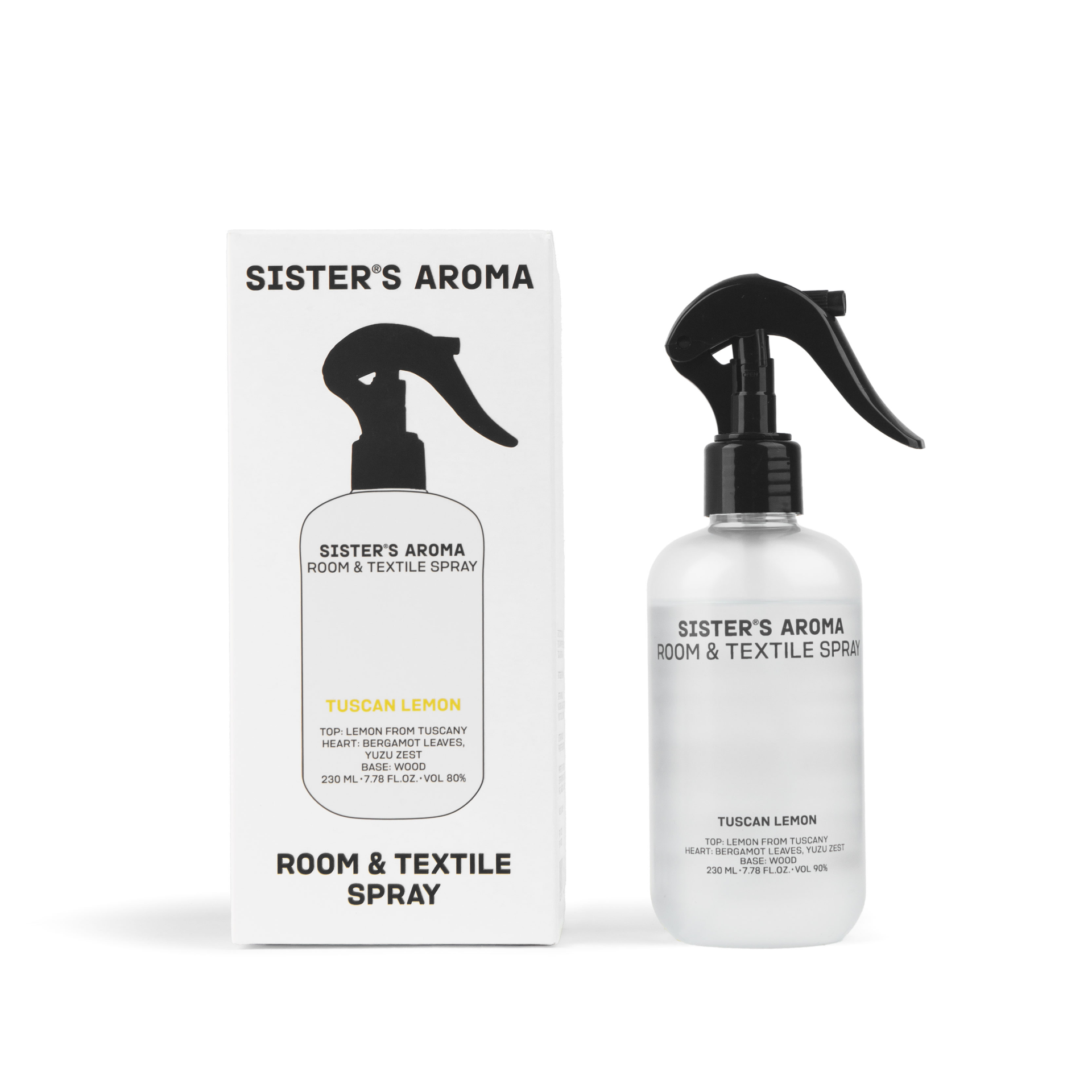 Room Spray TUSCAN LEMON by Sister’s Aroma — свіжий та іскристий аромат стиглих цитрусів із деревним акордом. Він нагадує літній ранок на середземноморському узбережжі: лагідне сонце, легкий вітерець та аромат лимонних дерев у повітрі.