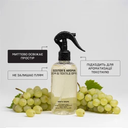 Room Spray WHITE GRAPE by Sister’s Aroma — вишуканий, ніжно-солодкий аромат білого винограду з квітковими нотами. Це теплий літній вечір серед залитих сонцем виноградників, який хочеться смакувати повільно.
